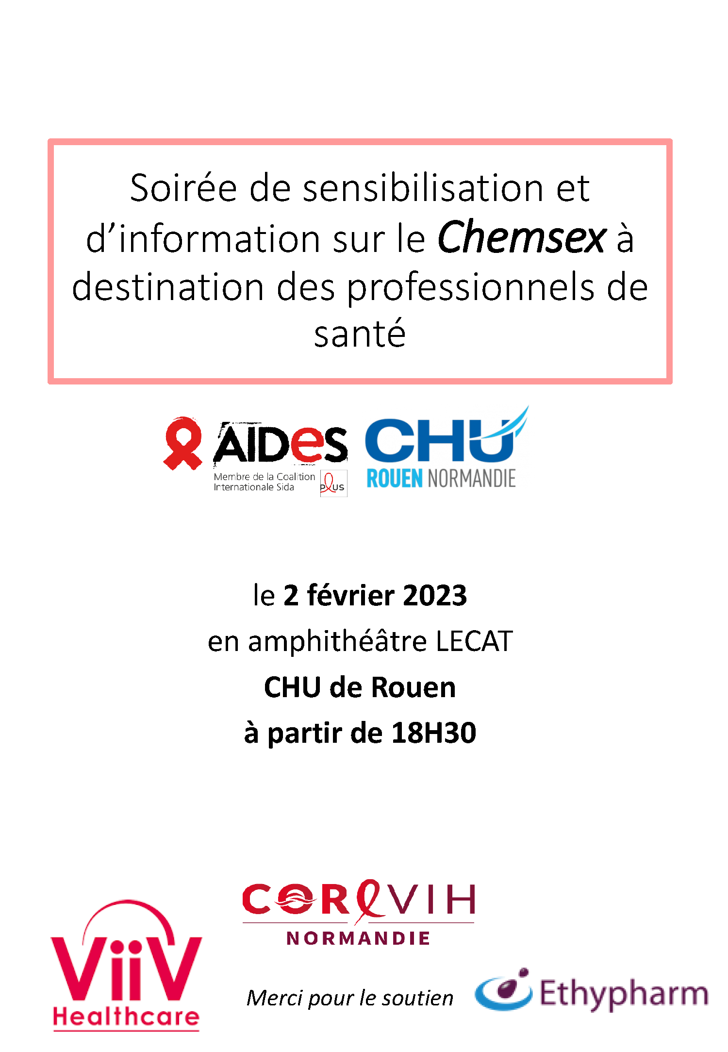 Retrouvez ci-dessous le programme et l’enregistrement du Webinaire "Sensibilisation des professionnels de santé au CHEMSEX" soutenu par le COREVIH Normandie le 2 février 2023.
