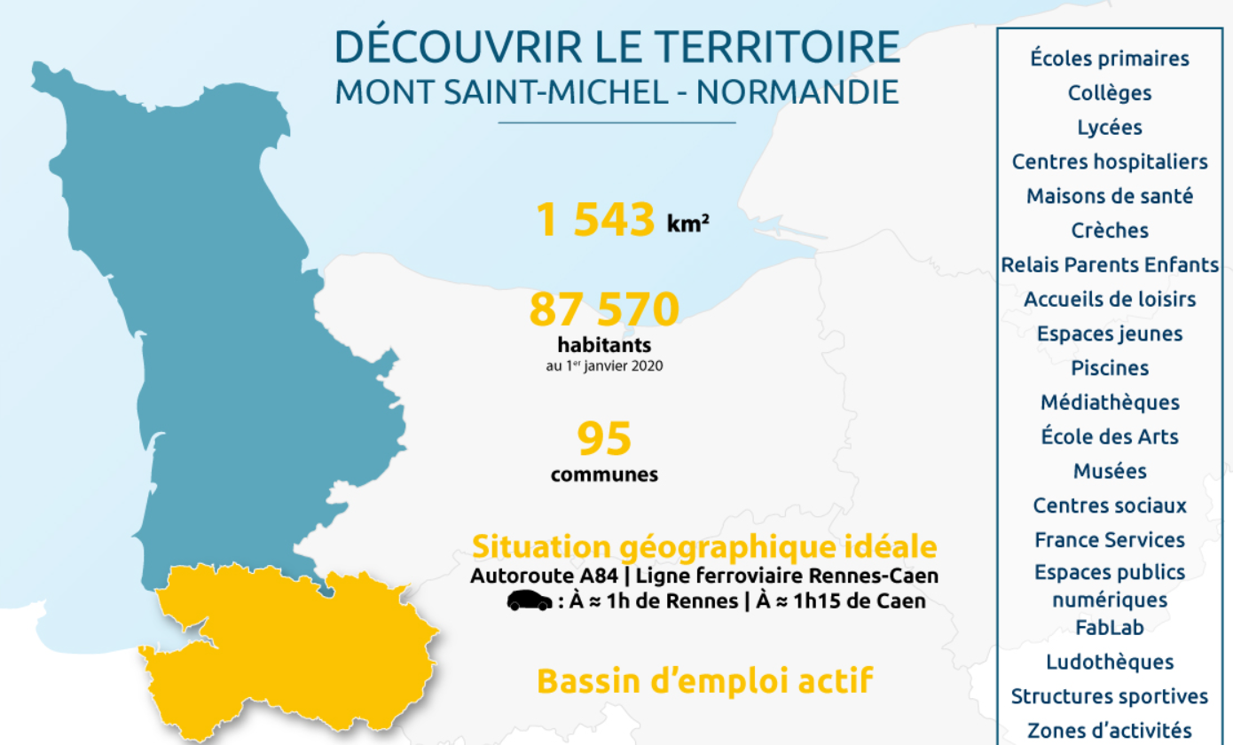 La CPTS Mont Saint Michel concerne le territoire de la Communautée d’Agglomération Mont-Saint-Michel Normandie, située dans le département du sud de la Manche en région Normandie.