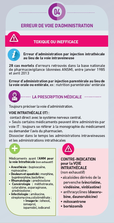 Retrouvez le E-Learning "Erreur d'aministration par injection intrathécale au lieu de la voie intraveineuse" (mis à disposition par l'OMéDIT Centre -Décembre 2013).