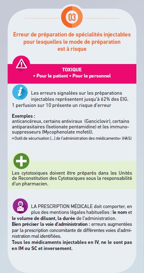 La prévention d'évènements "qui ne devraient jamais arriver" liés à des produits de santé est une priorité pour les établissements de soins (circulaire DGOS du 14 février 2012).