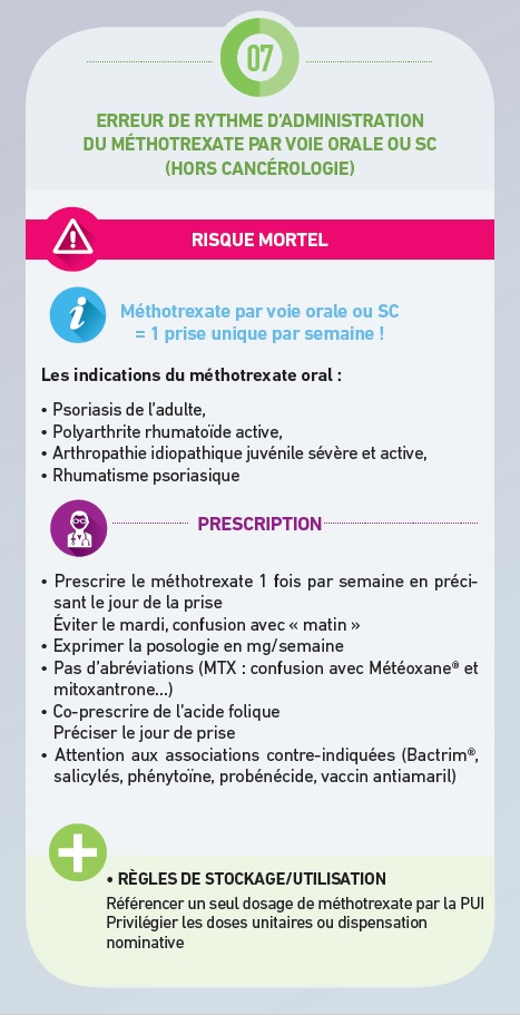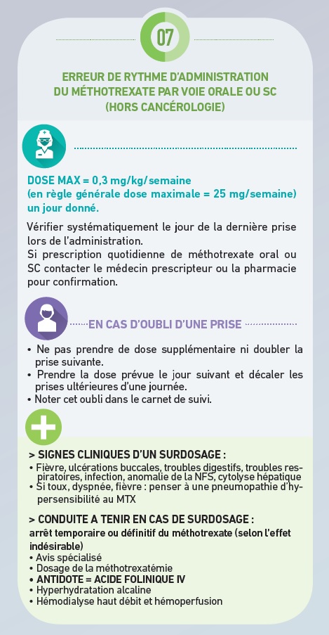 - Affiche "Méthotrexate oral" récapitulant les 7 points pour éviter les accidents (OMéDIT Aquitaine - 2012)