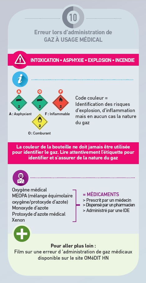 L'ANSM a publié en Juillet 2012, une mise au point "Risques et précautions d'emploi liés à l'utilisation des gaz à usage médical".