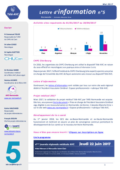 L’histoire débute en janvier 2016 : la filière AVC Basse-Normandie lance sa première lettre d’information, un outil simple et pratique pour garder le lien entre les équipes impliquées dans le dispositif télé-AVC.