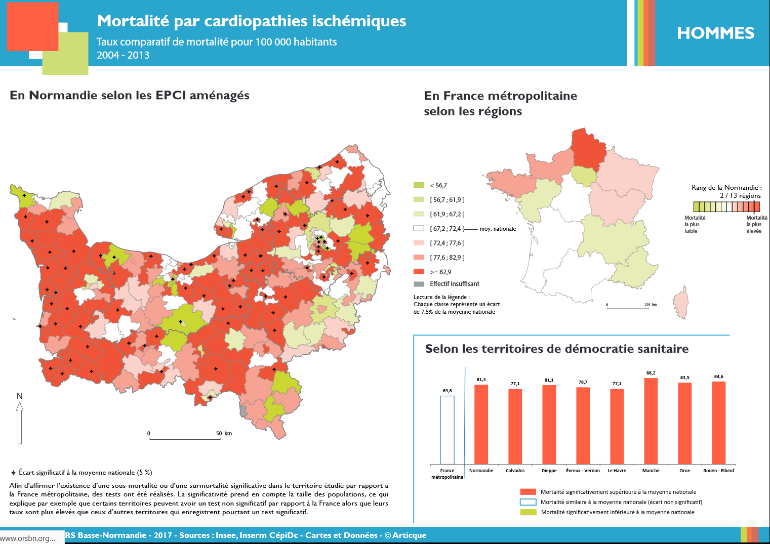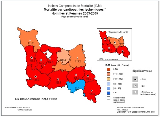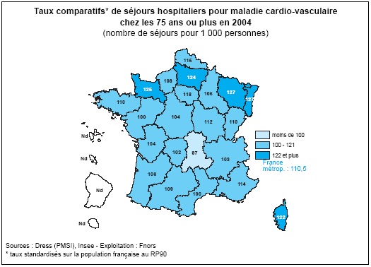 En effet, la Basse-Normandie fait partie des 4 régions françaises où le taux de séjours hospitaliers pour maladie cardio-vasculaire est le plus élevé (126 pour une France à 110.5), elle se positionne même comme la troisième région française pour ce taux.
