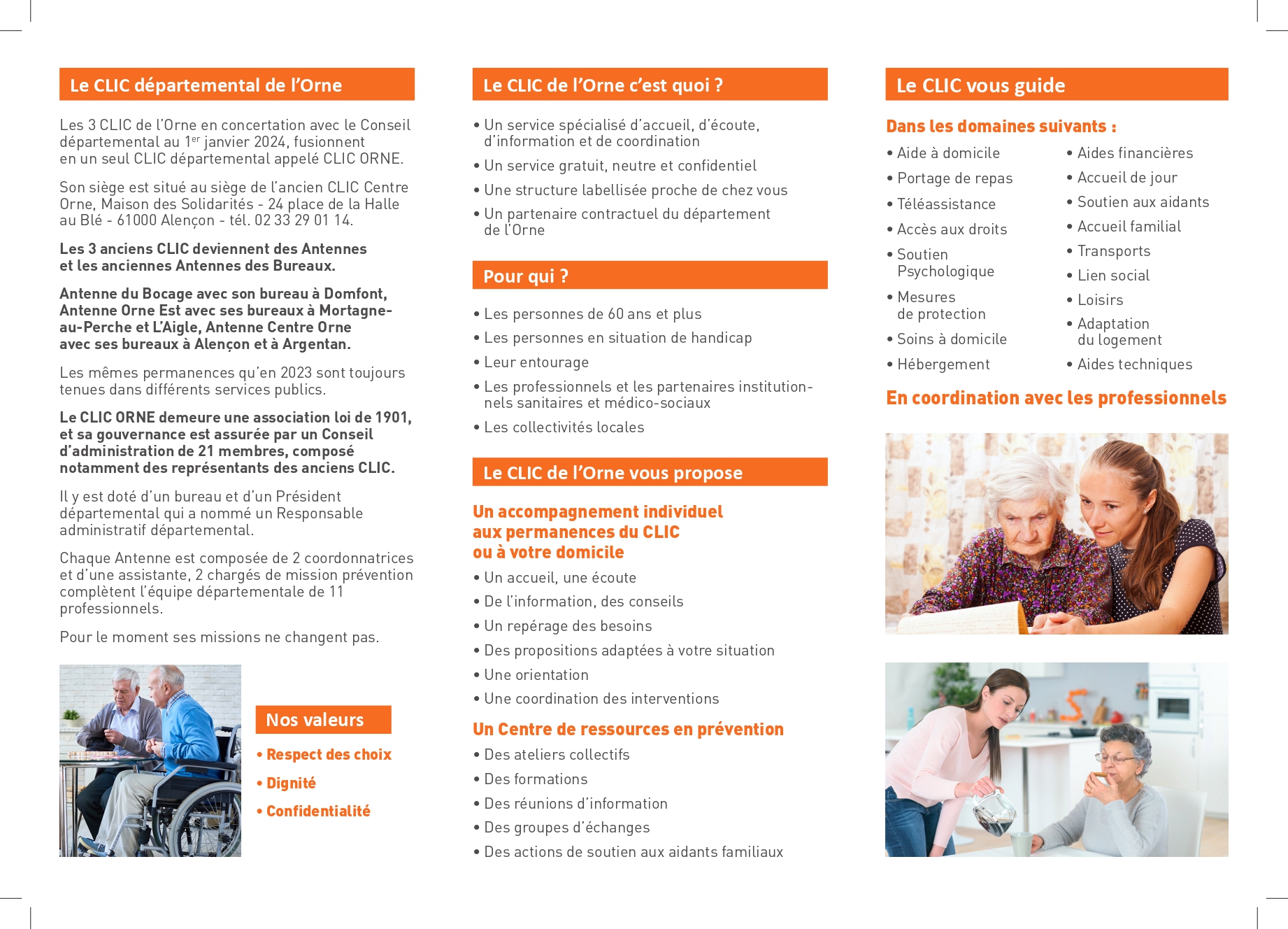 Un CLIC est un point d’accueil, d’information, de conseil, d’orientation et d’accompagnement pour les personnes âgées de plus de 60 ans, leurs familles et les professionnels.