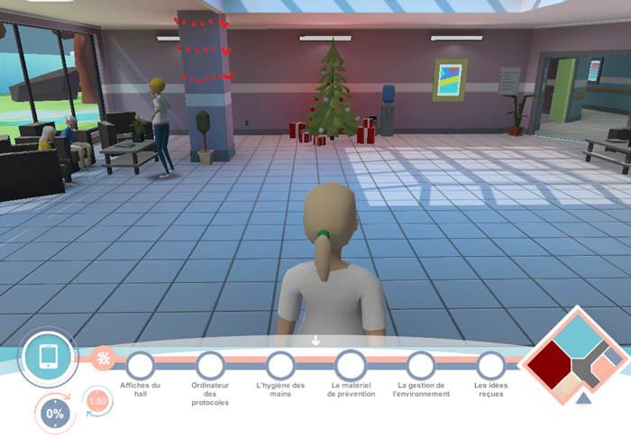 Ce Serious Game a été développé et produit dans le cadre des dispositifs d’e-formation tout au long de la vie appliqués au secteur de la santé, et répondant aux axes développés par l’Université de Caen Normandie et priorisés sur le plan national : qualité des soins et gestion des risques, longévité et vieillissement des populations et infections liées aux soins (Master Management Sectoriel, DU Prévention des infections associées aux soins, DU Qualité, Évaluation et Certification, DU Gérontologie sociale).