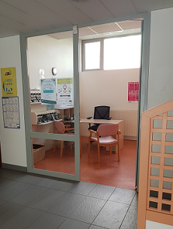Le bureau de L’instant répit est situé au rez-de-chaussée de La Maison de Jeanne, à droite de l'entrée principale.