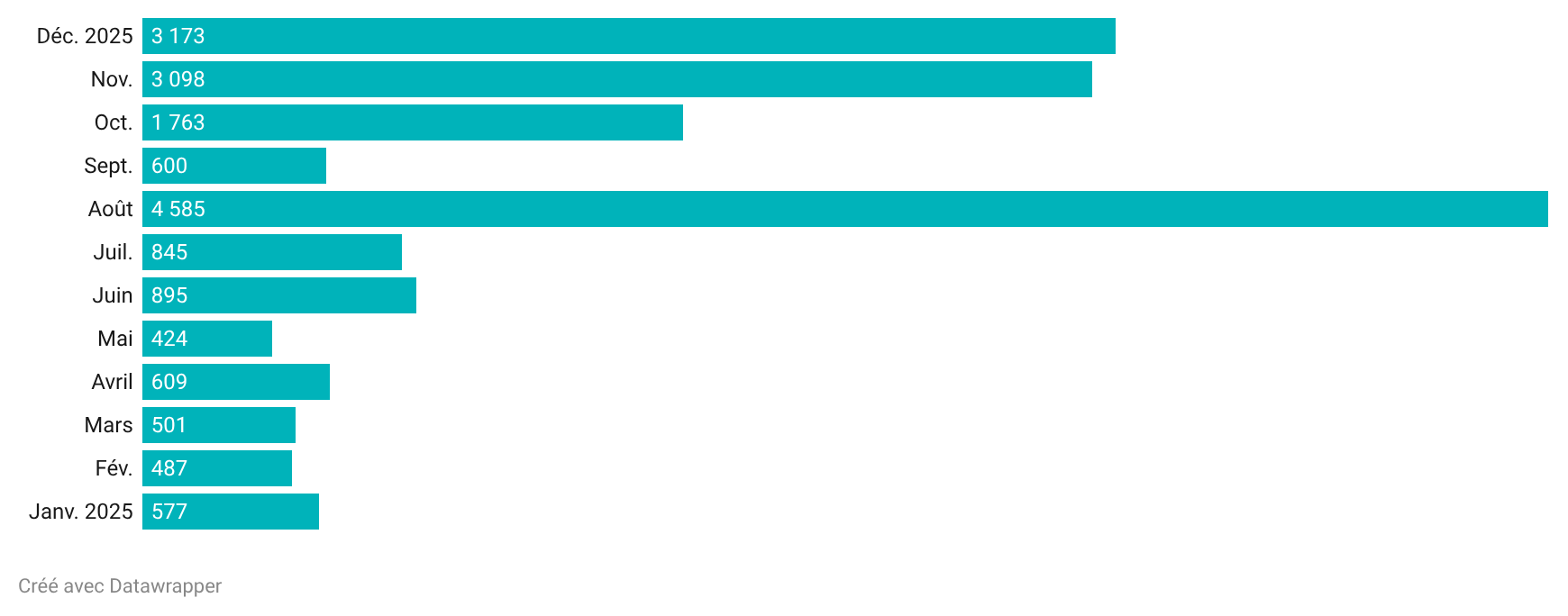 | Août | 6 200 | 2 897 | 786 | 596 | 460 | 1 842 | 76 |