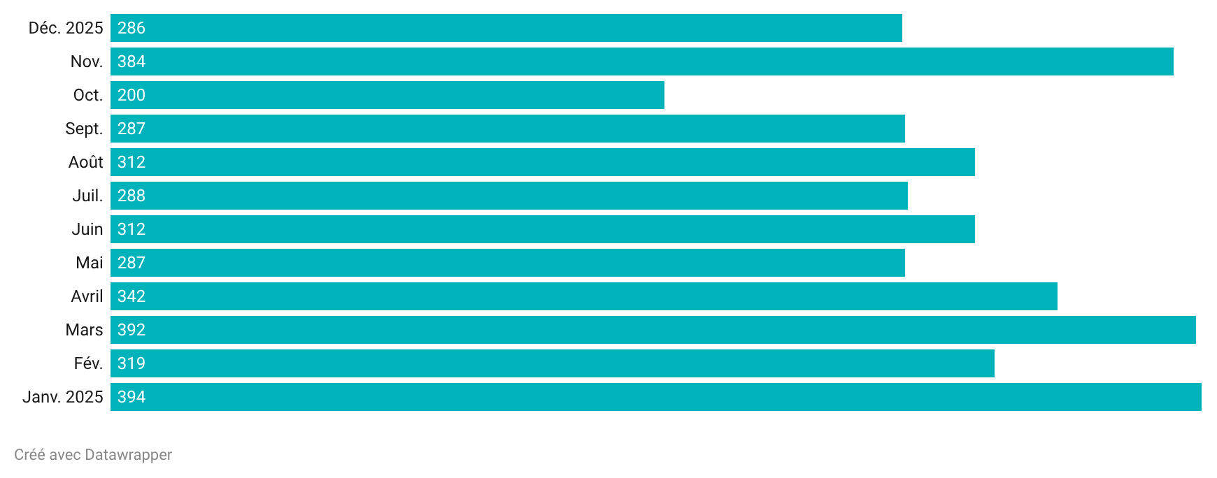 | Novembre | 6 731 | 3 963 | 914 | 696 | 449 | 2 059 | 240 |
