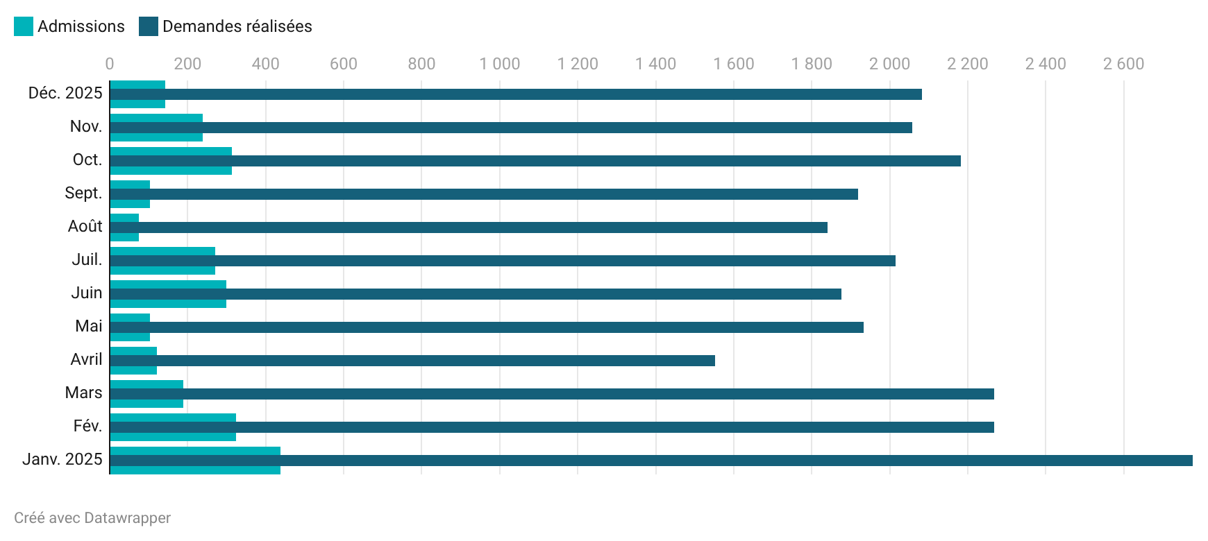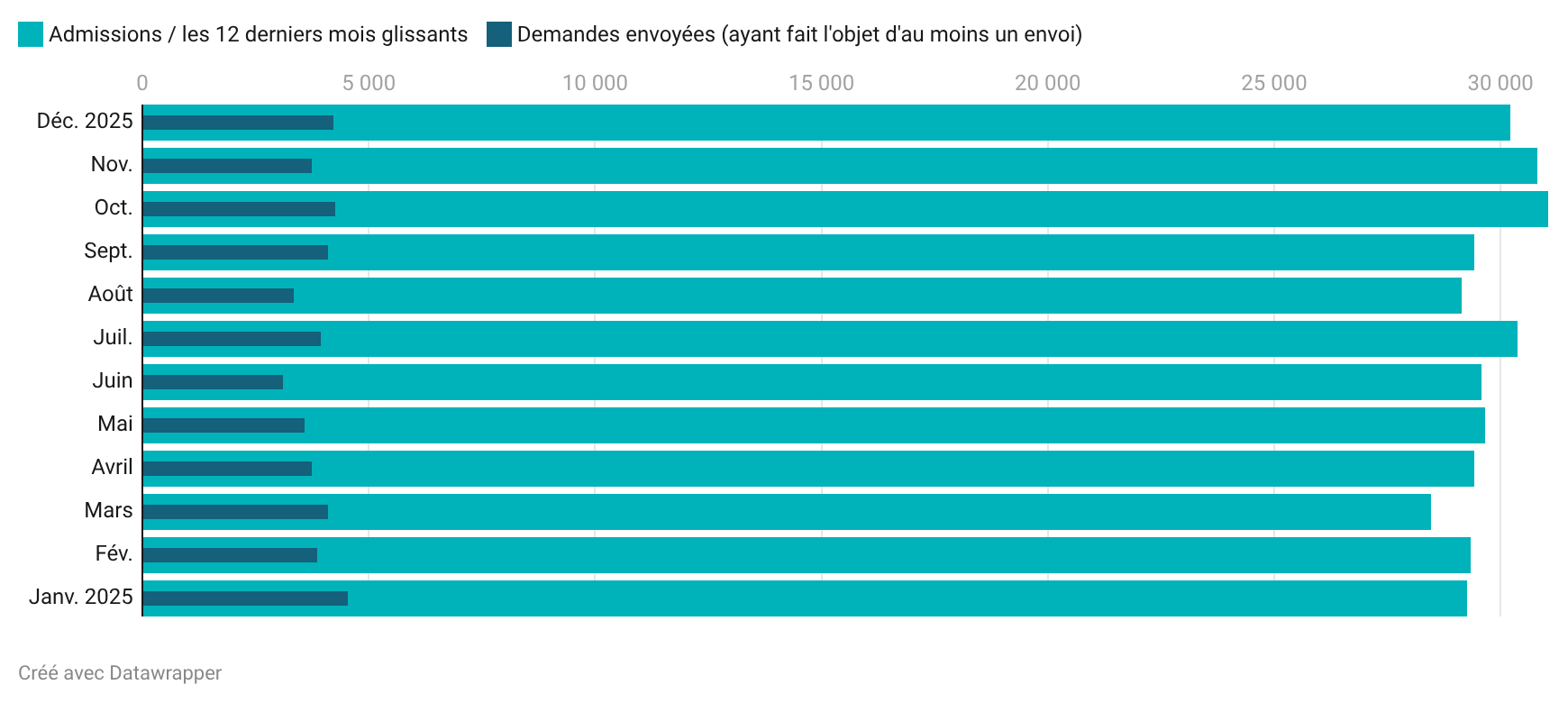 24 774 demandes crées et 2 620 admissions (cumulées) en 2025 :