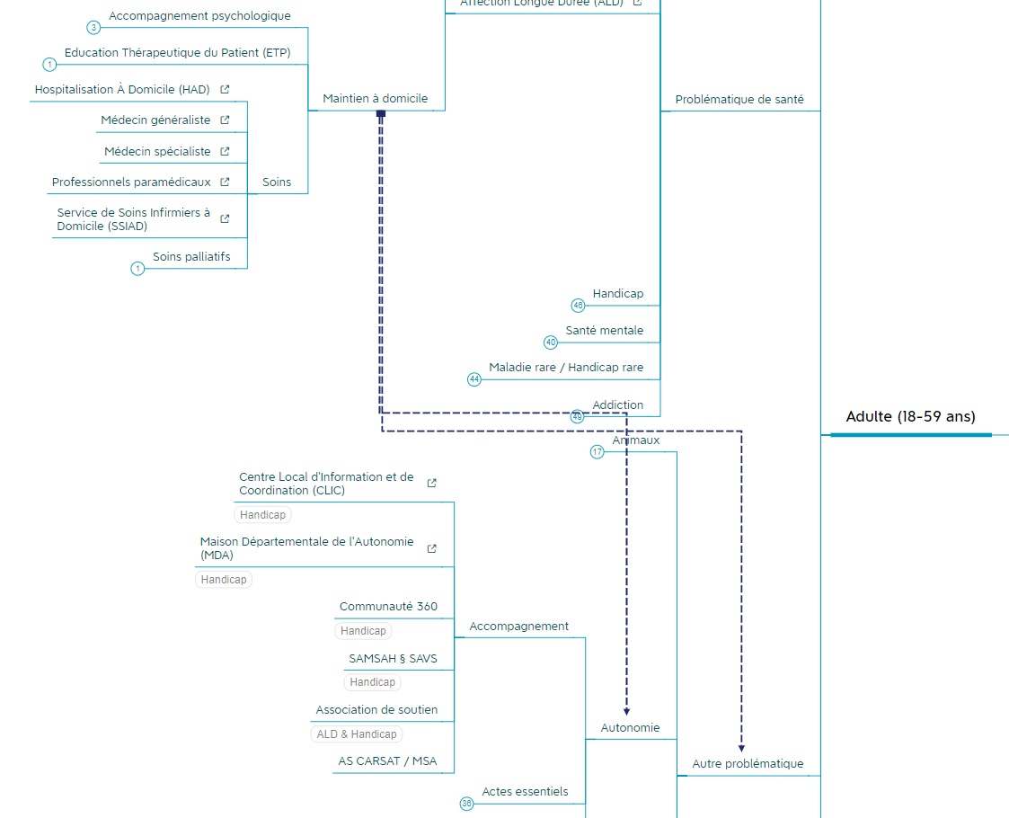 Malheureusement, il ne nous est pas possible d'implémenter l'outil sur notre site internet. Pour avoir accès à la carte mentale des parcours de santé, il vous faut :