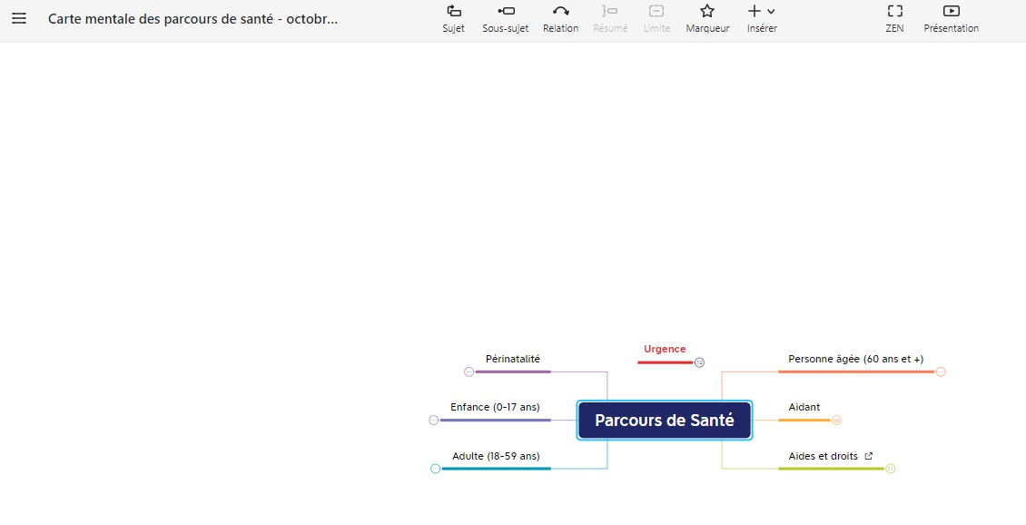 Vous pouvez maintenant passer à l'onglet suivant, "La carte mentale des parcours de santé", ci-dessous.