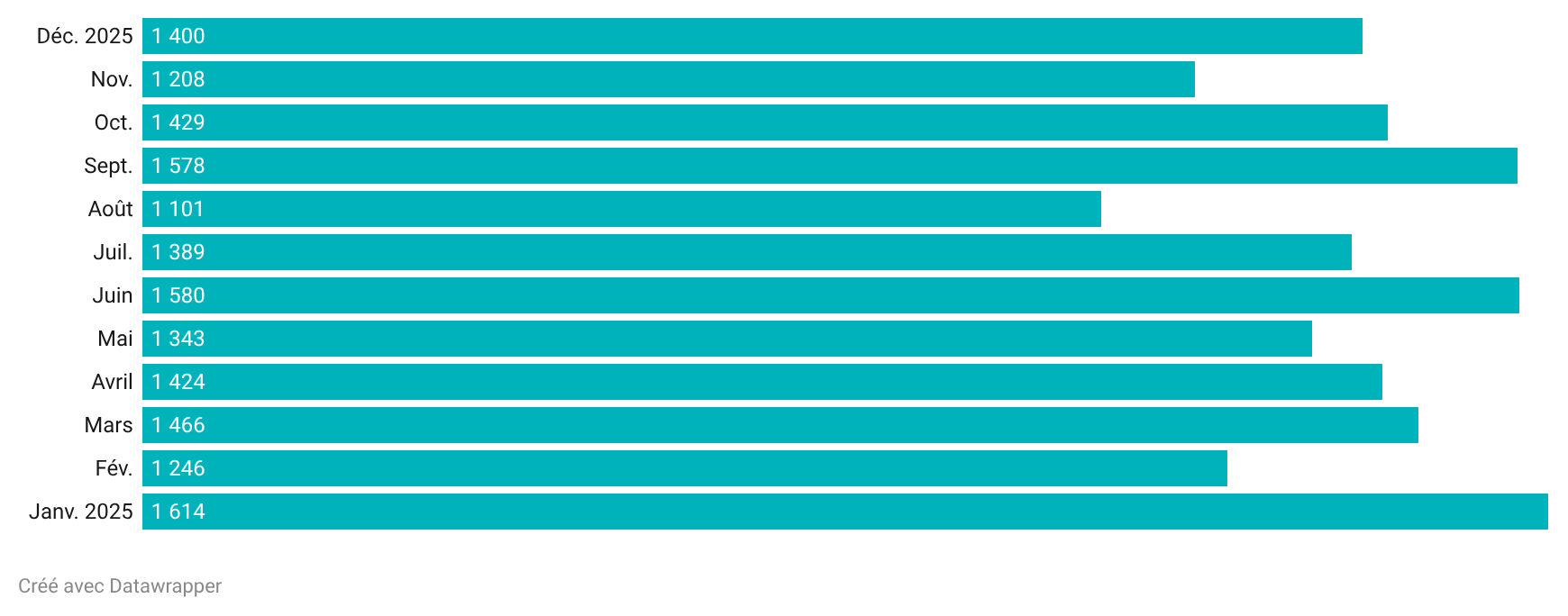 | Janvier | 1 397 | 164 | 37 | 1 | 13 | 2 | 1 614 |