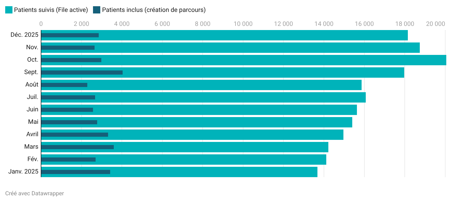 11 structures utilisatrices distinctes, 10 124 patients pris en charge en 2025 :