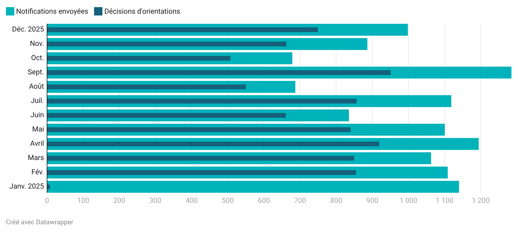 12 094 notifications ESMS crées et 9 311 décisions d'orientation en ESMS en 2025 :