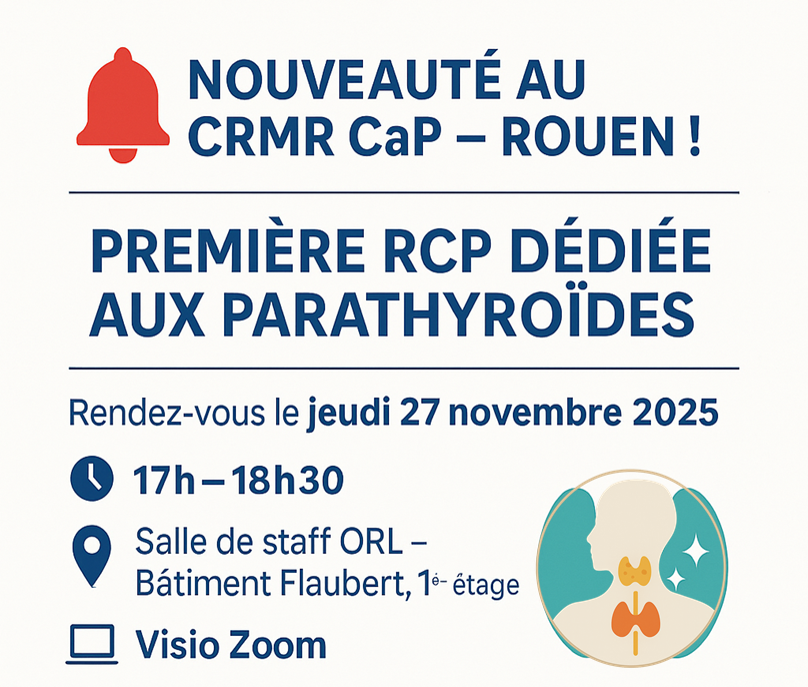Le site constitutif de Rouen est pluri-disciplinaire et prend en charge les enfants et les adultes atteints d’anomalies de la régulation de la calcémie (hyper ou hypocalcémie, hyper ou hypoparathyroidie, etc.) et/ou de la phosphatémie (rachitisme hypophosphatémique, calcinose tumorale, etc.). Il bénéficie de l’expertise de médecins endocrinologues, néphrologues, rhumatologues, généticiens, chirurgiens orthopédistes, neurochirurgiens, dentistes, parodontistes…