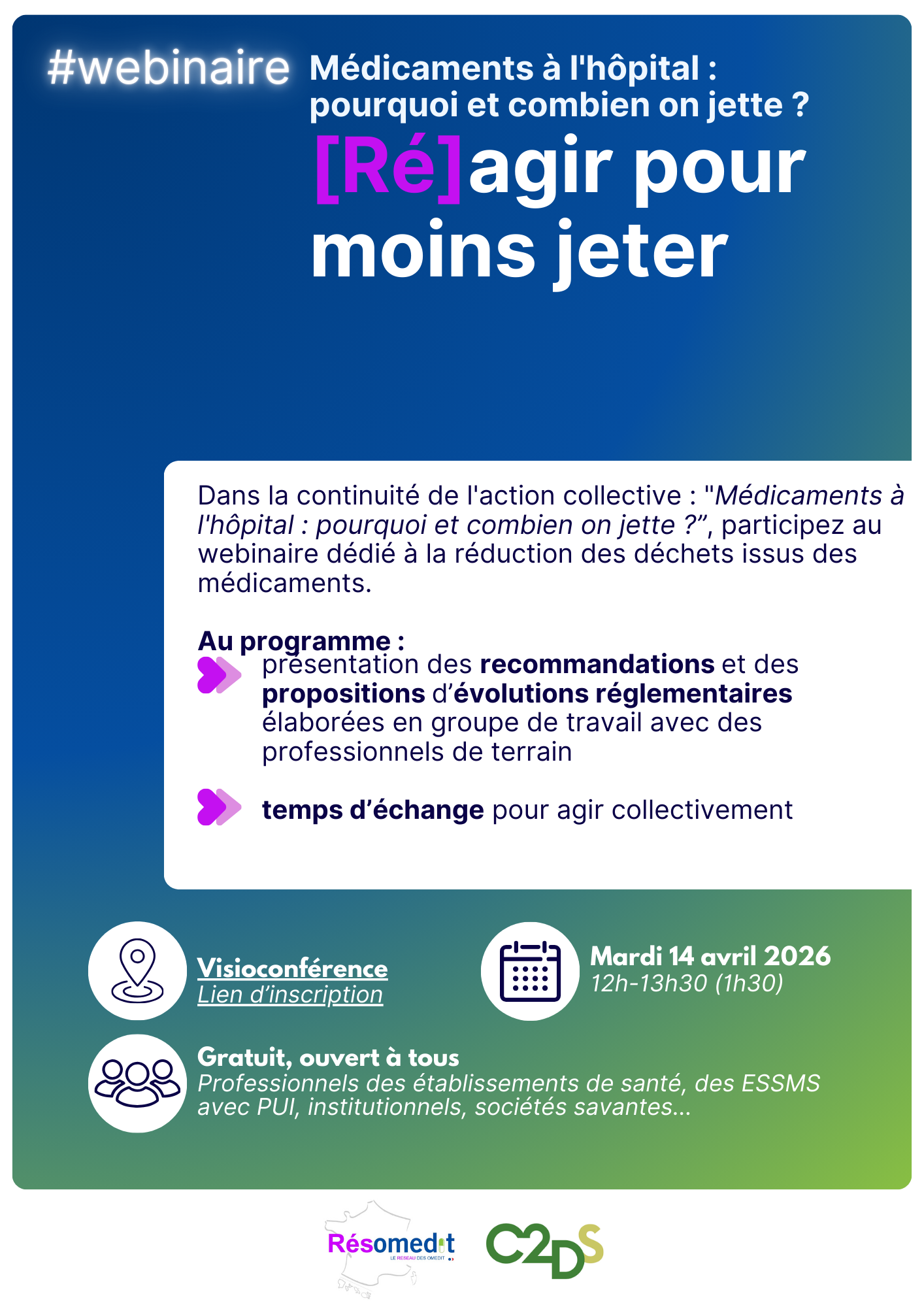 📍 Participants : ouvert à tous (professionnels des établissements de santé, des ESSMS avec PUI, institutionnels, sociétés savantes …)